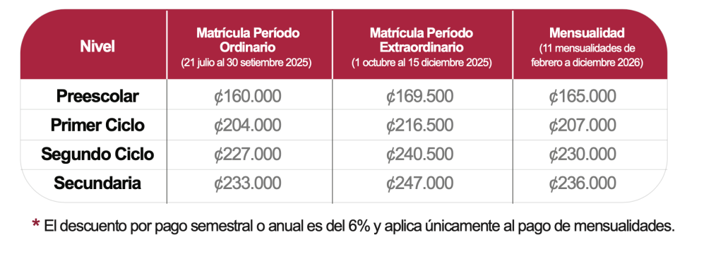 Elegir el centro educativo es una decisión crucial para el éxito a largo plazo de su hijo. Les informamos las tarifas escolares que aplicarán para el período lectivo 2026.